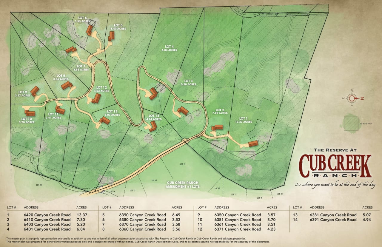 Nestled on 88+ acres at the top of the Cub Creek Ranch, The Reserve at the Cub Creek Ranch is the final phase of this coveted development. A private 14 lot tract within the gated development of Cub Creek Ranch.